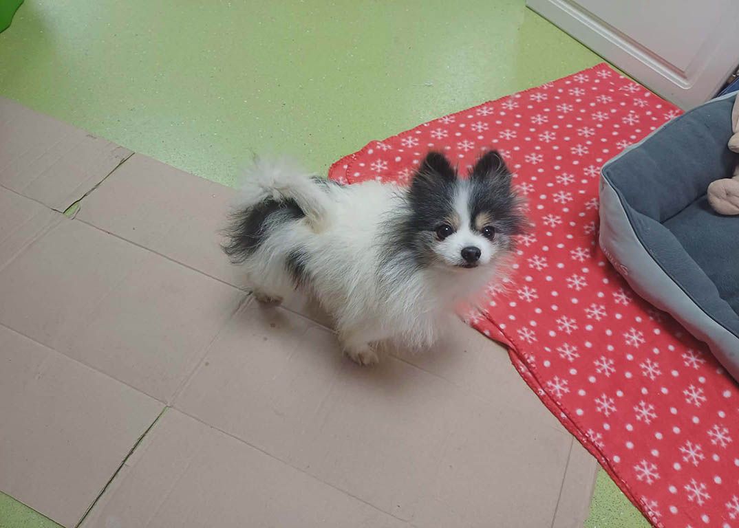 Nancy is a very sweet girl looking to retire in a cosy home. She is a pomeranian mix, so adopters should be familiar with the breed and grooming requirements of this breed.