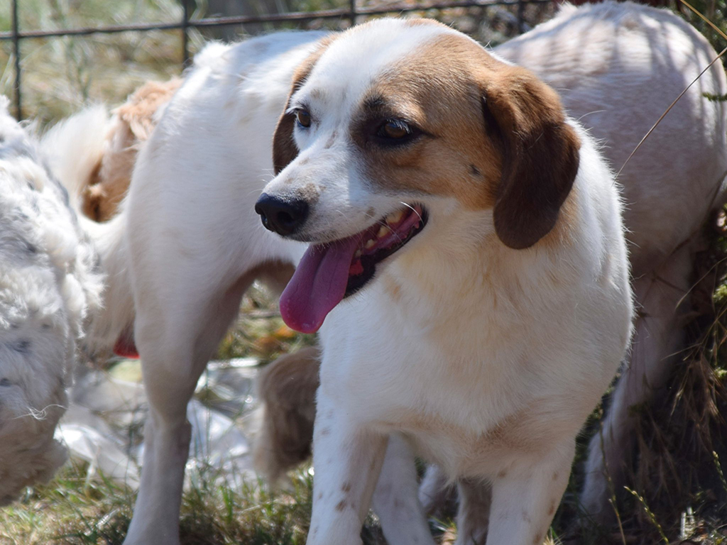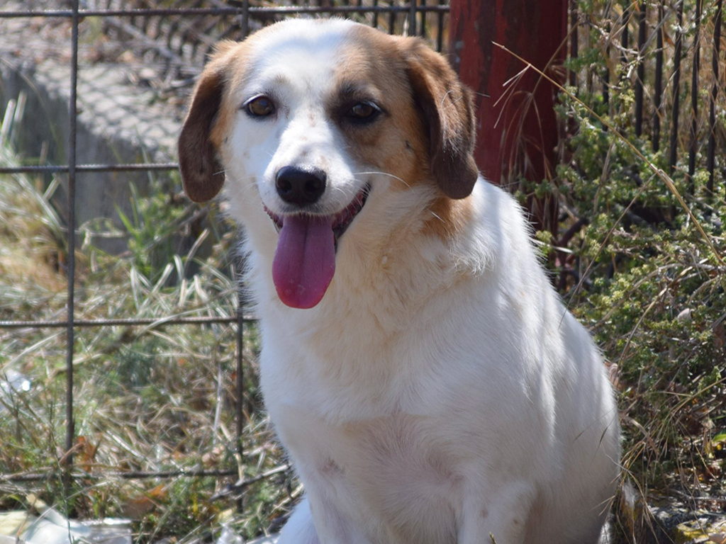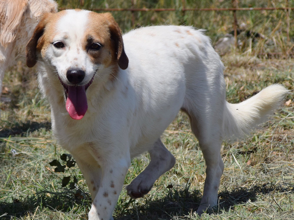 Athena is shy at first. Behind her cautious side lies a strong longing for a safe and loving family who will meet her on her own terms. With gentleness and patience, Athena will happily come forward to greet and get acquainted. She takes brave steps forward when given the time she needs. We wish for Athena a patient and secure family. Athena hasn’t had the best start in life, but her hope remains alive. Her longing is clear. Athena gets along well with other dogs and would happily live with a calm and confident dog who can show her the way in everything new that awaits. She still needs more practice walking on a leash.