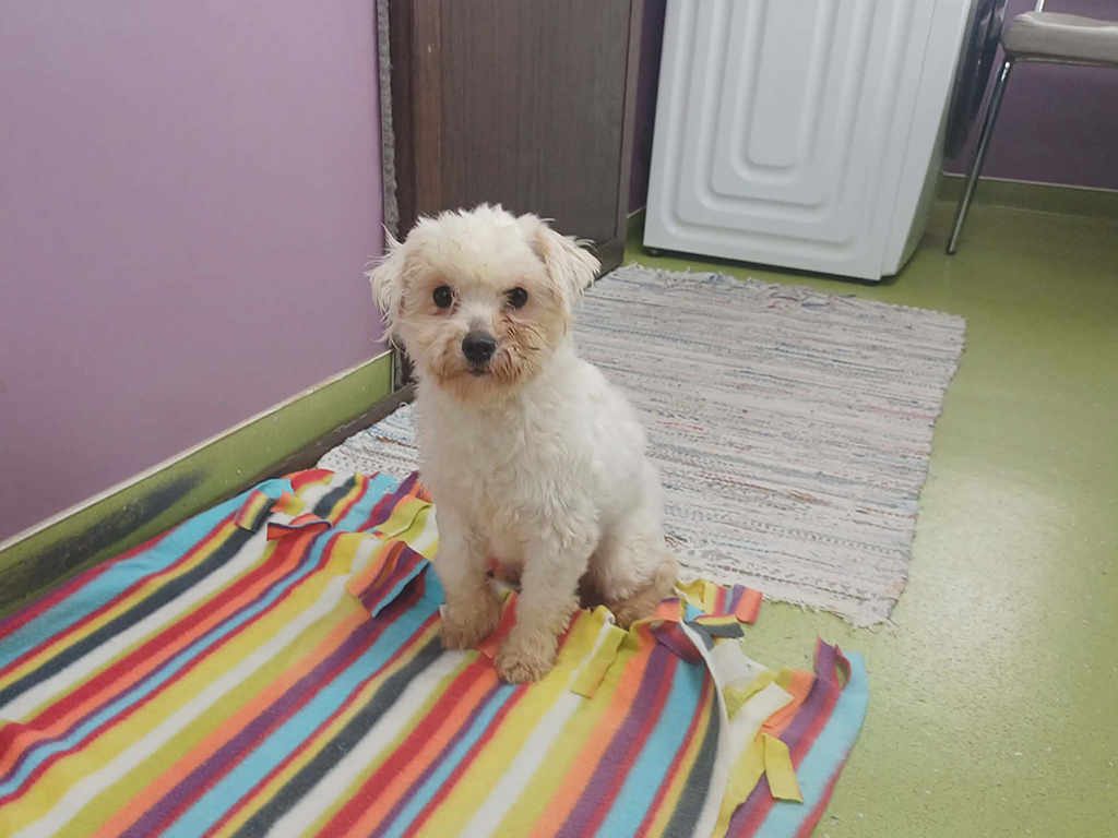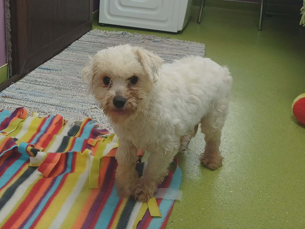 Greta is an adorable bichon frise mix with a very gentle soul. Unlikely to have experienced much kindness from people or ability to be a playful pup, Greta can be shy initially but often her curiosity gets the better of her and she is keen to make friends in the end. She will need a patient family who can give her the security and kindness she so longs. Once settled in, we have no doubt Greta will make an adorable companion and is more than deserving of all of the comforts her future home will come with.